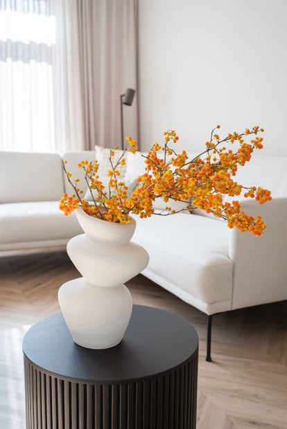*Door het gewicht en lengte van deze tak kan het lastig zijn om een tak goed in een vaas te zetten. Sommige vazen kunnen snel omvallen omdat de tak topzwaar is. Grote- en stabiele vazen zijn daarom erg geschikt voor deze takken. Zware vazen met een breed staoppervlak hebben de voorkeur.