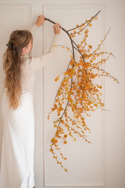 Deze tak kan op elke willekeurige plaats maandenlang als opvallende decoratie dienen.