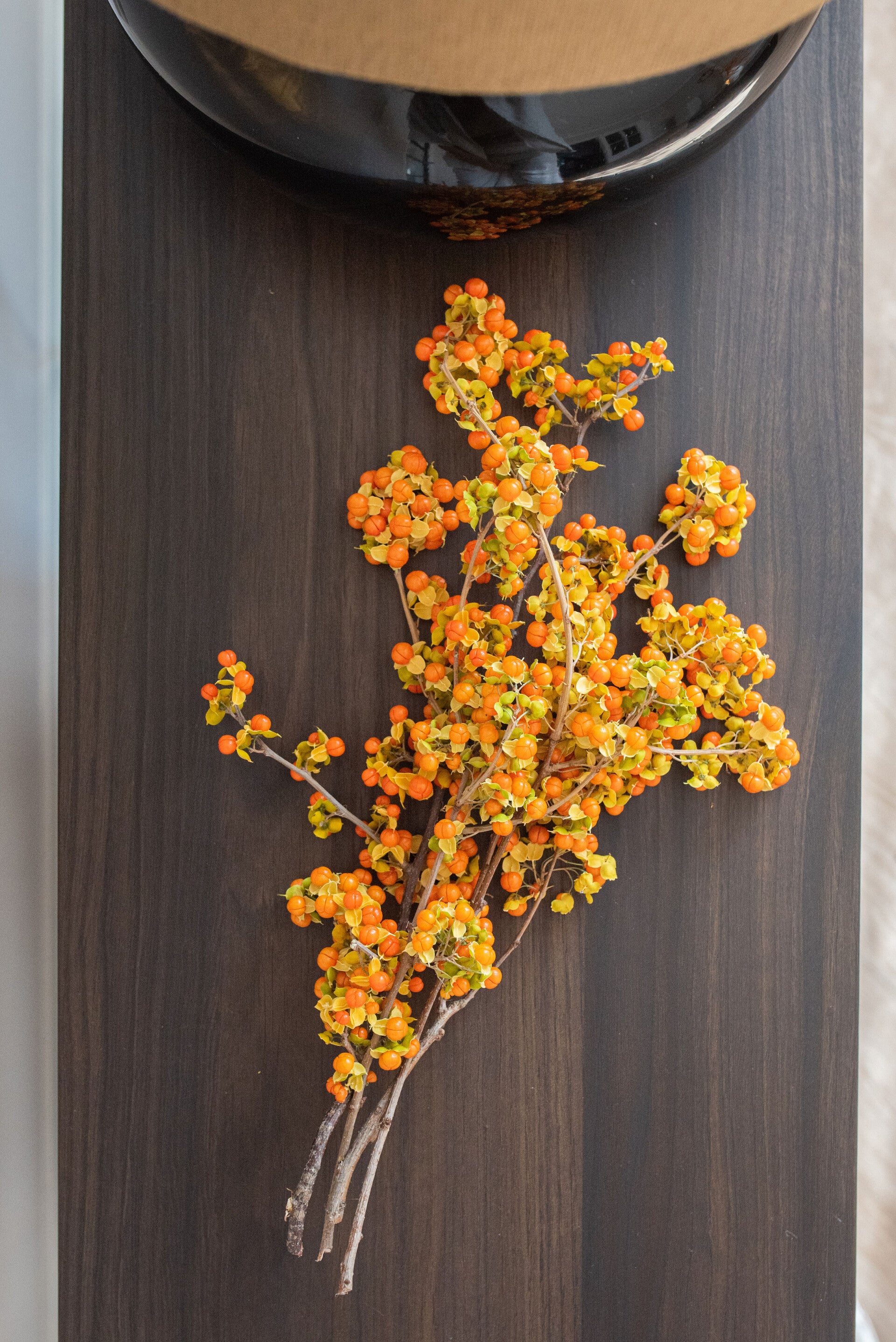 De lengte van deze bos maakt dat hij uitermate geschikt is als eyecather in een herftstarrangment.
